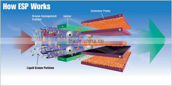 Electrostatic precipitation technology (ESP) is the key to the superior performance of the Smog-Hog. Unlike bag or box filters that remove only the largest particles, ESP electrically charges even microscopic contaminants, then captures them magnetically in an aluminum collection cell.As a result, this sophisticated electronic solution leaves virtually no grease or hazardous particle untouched, releasing only clean air from the system. UAS‘ ESP technology ensures constant airflow, unlike barrier filters that can plug and become ineffective.