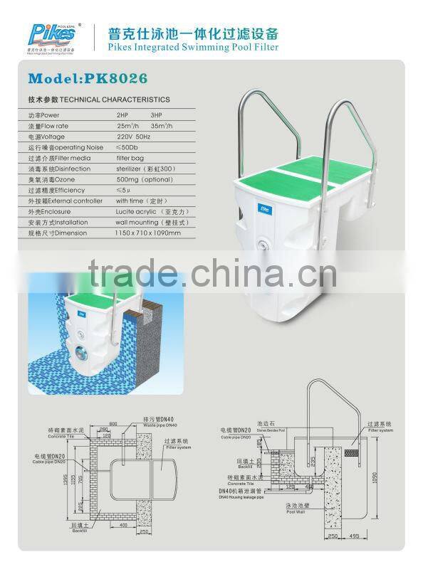Acrylic Compact Intergrative Wall Mouted Pipeless Pool Filter PK8025