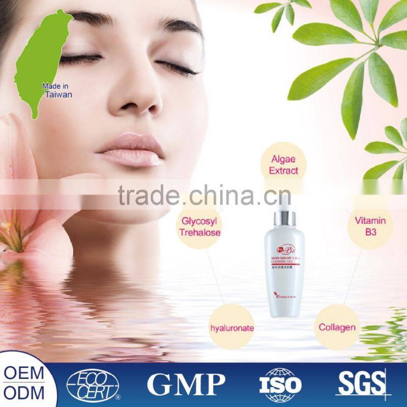Contains collagen and algae extract. This product can clean skin, remove makeup and provide moisture to skin. Use rich foamy mousse to clean the deep skin and pores. This cleanser provides moisture to skin without feeling greasy, oily and sticky at all.