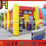 We pack inflatable games by carpet at first.Then put the package in tarpaulin bag so that the packages will not be frazzled during delivery process.In order to let you find your goods quickly we will paste mark paper with your order number.