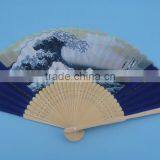 Painted Fabric Folding Hand Fan With Bamboo Ribs