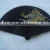 Painted Fabric Folding Hand Fan With Bamboo Ribs