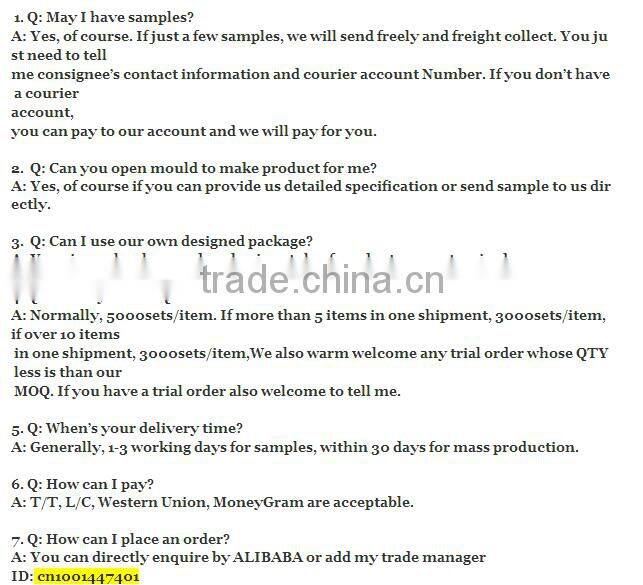 With 11 years’ experience in the industry field, we are committed to provide high quality products (certification available for ISO9001:2008, REACH, PAHS, and EN71-3 etc.) . Factory audit pass by SMETA (Sedex), WCA etc. With competitive price and reliable support, we are ready to offer our best solution for your particular needs.