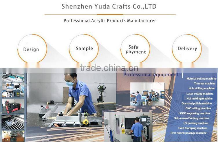 Shenzhen Yuda Crafts Co.Limited is a professional manufacturer of acrylic displays with rich experience, professional engineer team and modern product lines. We can customize different kinds of acrylic displays to display your items in a professional way.