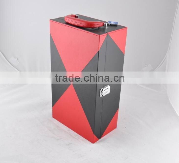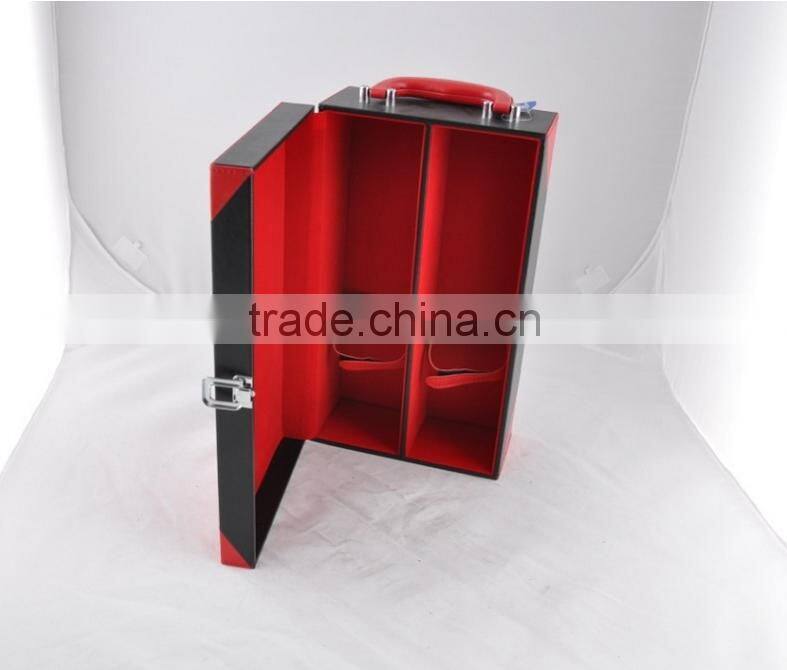 Wholesale Custom High-grade PU Leather 2 Bottles of Red Wine Box, Storage Box of Red and Black
