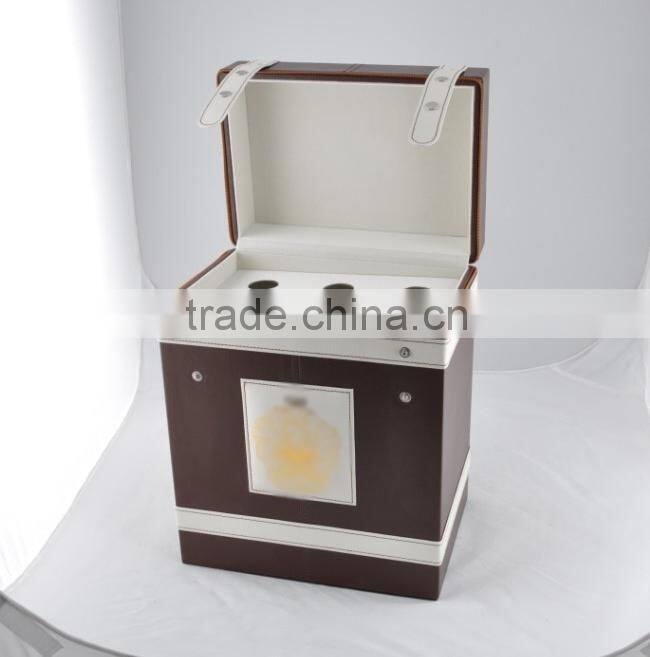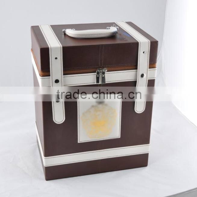 Wholesale Custom High-grade PU Leather Order Bottled Wine Champagne Boxes, Brown Gift Box
