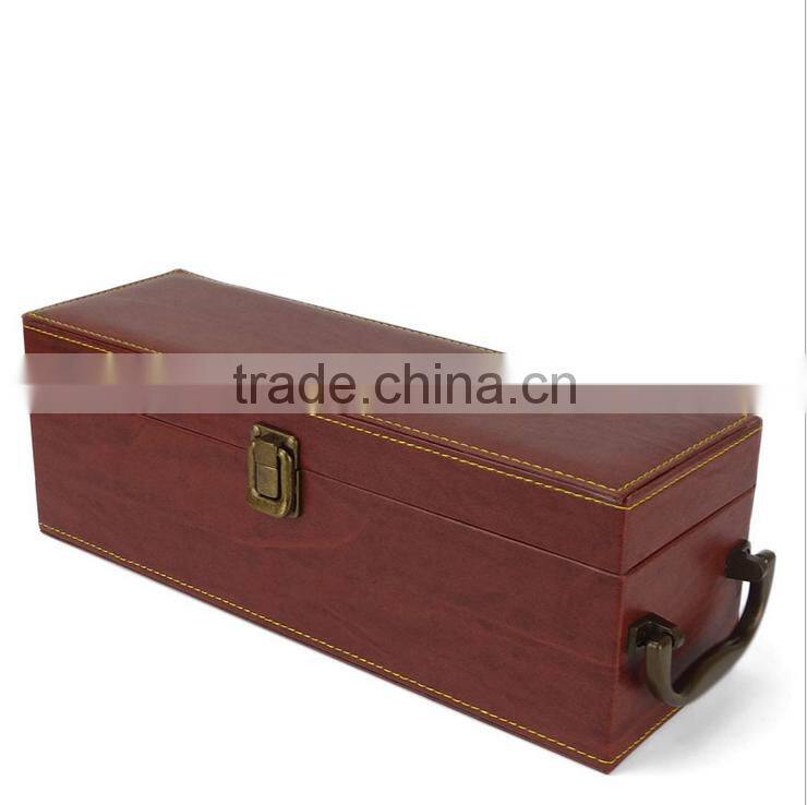 Chinese Factories Wholesale Custom PU Leather Single Bottled Wine Box, Deep Coffee Color Gift Box