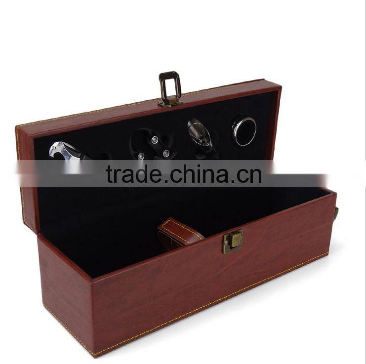 Chinese Factories Wholesale Custom Luxury Single Bottled Wine Box, Leather Brown Beautiful Gift Box