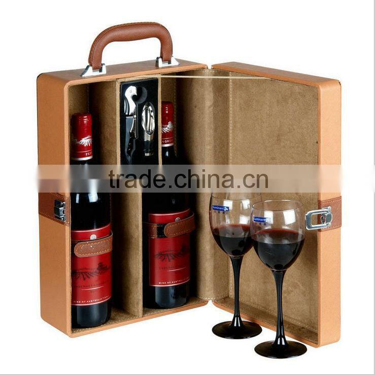 Chinese Factories Wholesale Custom High-grade PU Leather 2 Bottles of Red Wine Box, Fashion Beautiful Gift Box
