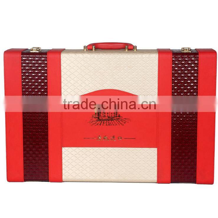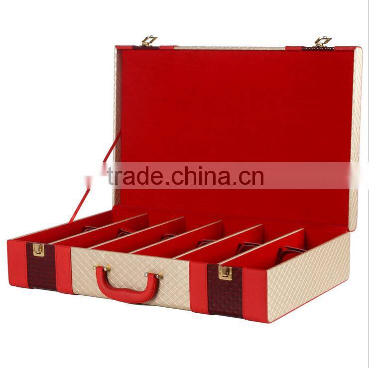 Home > Products > Wine Box > Chinese Factories Wholesale Custom High-grade PU Leather 6 Slot Wine Champagne Boxes, Red Gift Box
