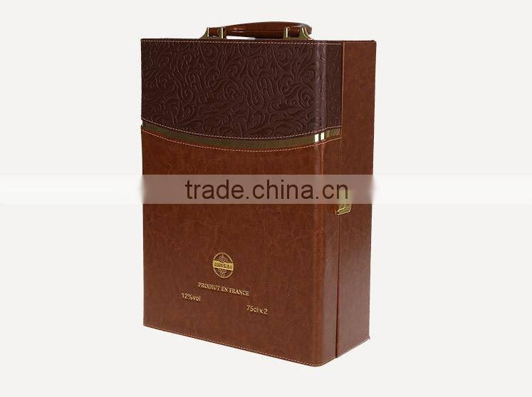 China Wholesale Custom Leather Factory 2 Bottles of Red Wine Box, Deep Coffee Color and Light Coffee Color Beautiful Gift Box