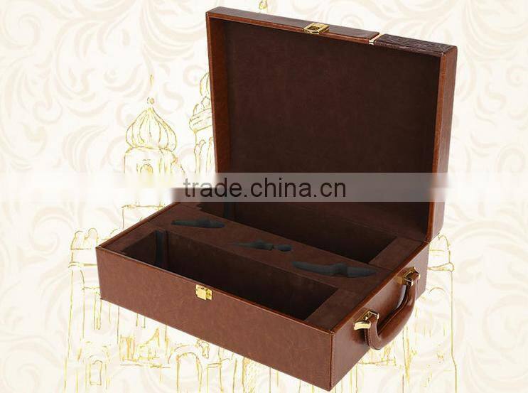 Ou Shigu Wholesale Custom 2 Bottles of Red Wine Box, Leather Brown Beautiful Gift Box