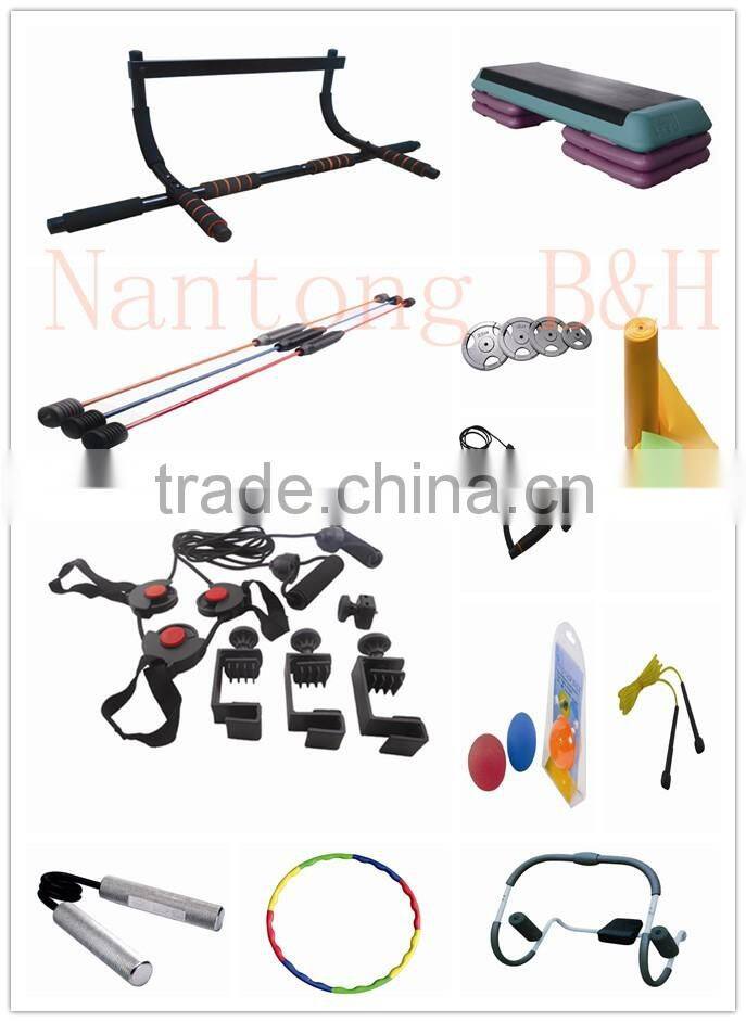 We offer a wide range of products such as dumbbell, jumprope, latex tube, expander, yoga&pilates items, aerobic step, ab roller, bosu ball, hula hoop, massage bar, resistance trainer and other plastic or rubber items.
