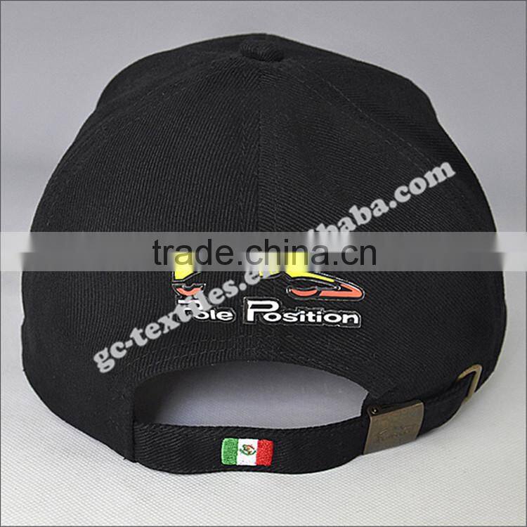 China Gold Supplier Acrylic Fabric Black Custom Logo Embroidery Six Panel Baseball Cap