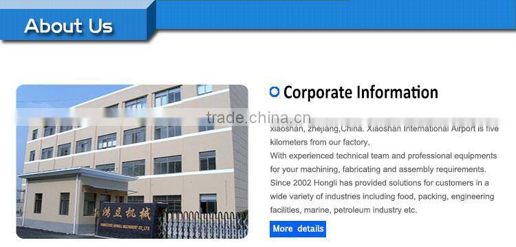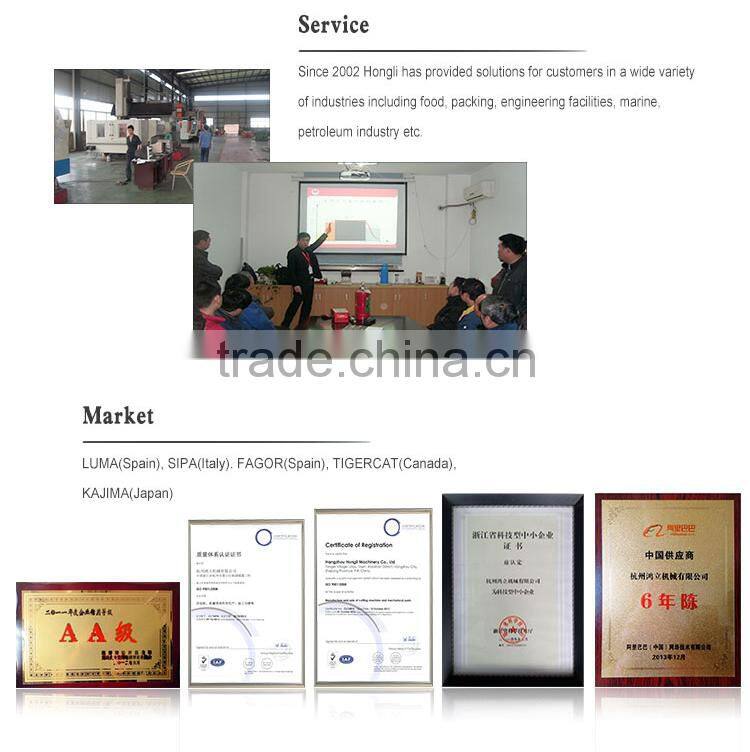 Hongli was found in 2002, located in Lin Pu Industrial park, xiaoshan, zhejiang,China. Xiaoshan International Airport is five kilometers from our factory, With experienced technical team and professional equipments for your machining, fabricating and assembly requirements. Since 2002 Hongli has provided solutions for customers in a wide variety of industries including food, packing, engineering facilities, marine, petroleum industry etc. Taiwan's existing import a gantry machining center, three vertical machining centers, used two German ZF gear box, Japan FAUNC - 21i; 18M; Mitsubishi M64 operating system. 1. Vertical MCV - 1600D xyz triaxial itinerary of 1650mm x 815mm x 850mm. 2. Vertical MCV-1300 xyz triaxial itinerary of 1350mm x 650mm x 650mm. 3. Gantry VB2520 xyz triaxial trip to 2500 x 2000mm x 1050mm. 4. Vertical MCV-850 xyz triaxial itinerary of 850mm x 500mm x 550 mm. 5. Suzhou tougher Sanguang proper thread cutting two units xyz triaxial itinerary 420mm x 350mm x 300mm 6. China Hanchuan production TK6411B NC boring and milling machine, one Taiwan. Xyz triaxial itinerary of 1300mm x 1500mm x 1000mm. 7. Ordinary equipment in the Czech Republic have a driller ZJ3040 Rocker, Rocker driller ZJ3050 two Desk, 8. Hyde CNC lathe CNC400A two Taiwan-750 (07.8), a lathe Shenyang CA6140 Taiwan 9. Hangzhou Machine Tool Plant M7140 a surface grinder, 10. Guilin Machine Tool Plant X5750 a milling machine, Jiangdong Milling Machine Tool Plant 16,384 a Taiwan section, Rongde production KTM260 a turret milling Taiwan. Customer: LUMA(Spain), SIPA(Italy). FAGOR(Spain), TIGERCAT(Canada), KAJIMA(Japan) Product/Services: Machining, Fabricating, Assembly