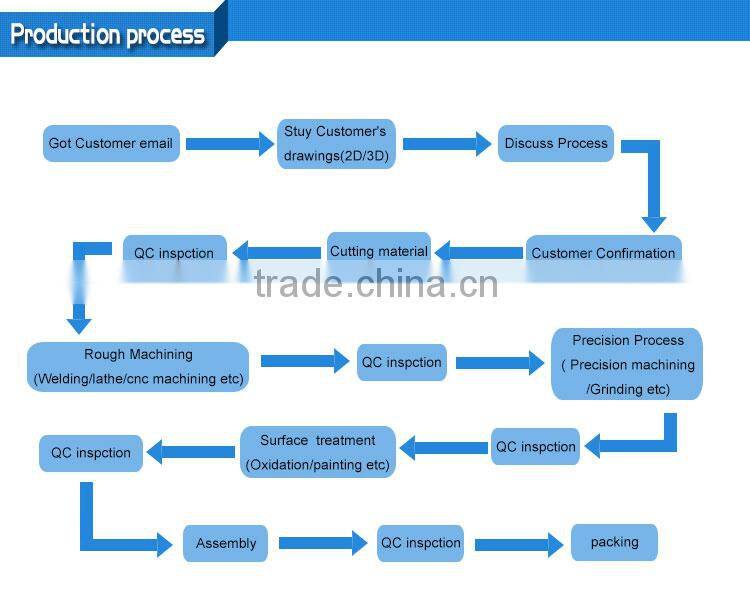 Q:Can you provide product catalog and quotation? A:We mainly non-standard product processing,you can provide drawings(PDF or CAD),we will give you complete your drawings offer. Q:what is you used drawing format? A:pdf/.dwg/.igs./.stp/x_t. etc Q:What is the minimun order quantity? A:No MOQ limited. Q:What is your packing? A:Usually wooden case and can be packed as customer’s requested. Q:How long is the delivery time? A:According drawing decide some time within 15-30 days after receiving deposit. Q:What is your payment? A:T/T and western union.30% deposit and 70% balance should be made before shipment. |