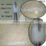 HHV12 2011 Wholesale New Two Layers Tuller Few Beautiful Lace Edged Real Sample Simple Bride Wedding Veil
