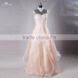 RSE703 High Neck Sexy Lace Floor Length Backless Blush Organza Cheap Pink Wedding Dresses