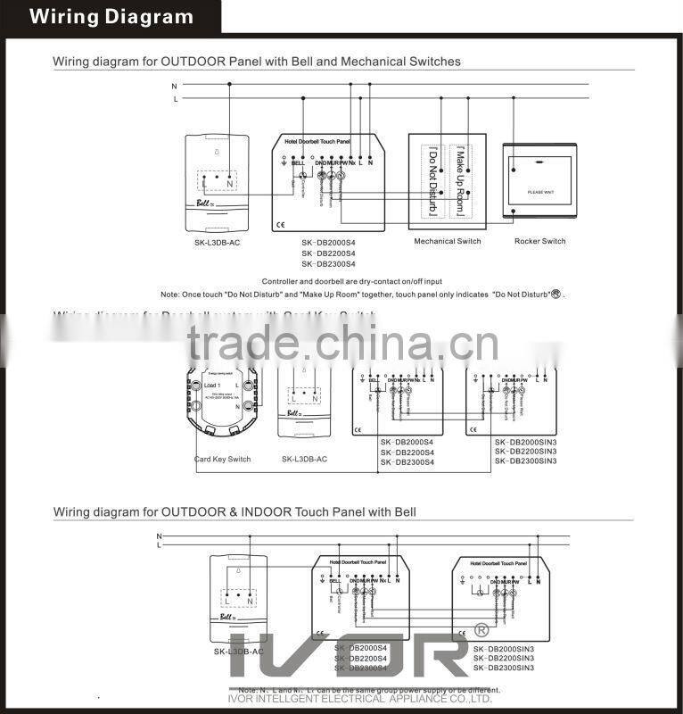 IVOR Low Voltage Smart Hotel Doorbell System With DND,pls Wait,Clear Room Indicate SK-DB2300SYS-IW PC Frame