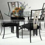 Square Round Glass Top Bevel Edge Dining Table and Side Chairs