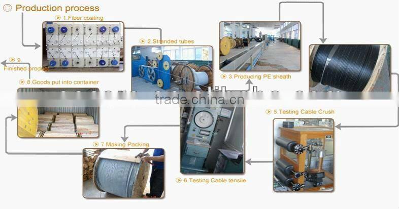 There are high quality 250μm fibers are placed in a loose tube made of a high modulus plastic which is filled with a water resistant filling compound.Two Parallel steel wires are placed at the two sides of the steel tape.The cable is completed with a polyethylene(PE) sheath.