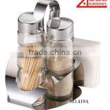 Hot Sale 3Pcs Glass Condiment Set With Metal Rack