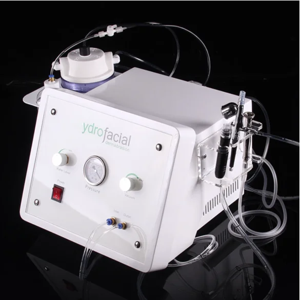 Hydra-dermabrasion (or hydra microdermabrasion) applies mechanical and chemical peeling simultaneously. A hydra-dermabrasion machine includes a water jet, an air compressor, a two-way flow control valve, a purified container and a waste water tank.