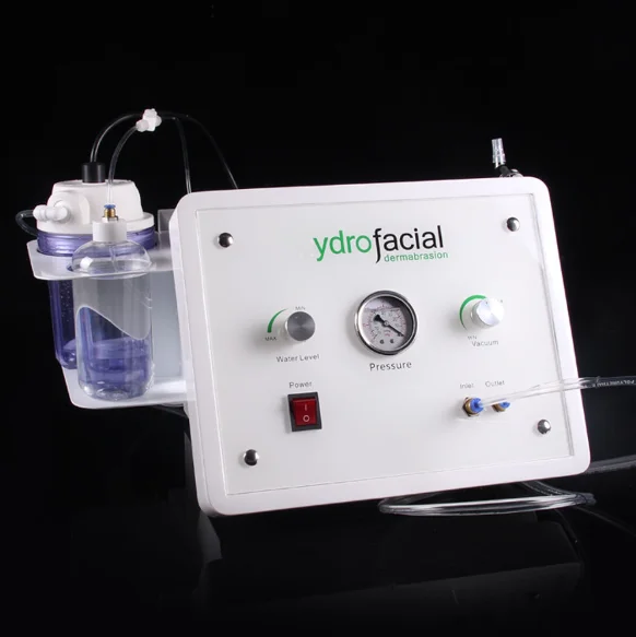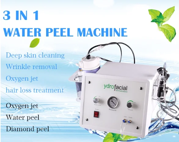 Hydra-dermabrasion (or hydra microdermabrasion) applies mechanical and chemical peeling simultaneously. A hydra-dermabrasion machine includes a water jet, an air compressor, a two-way flow control valve, a purified container and a waste water tank.