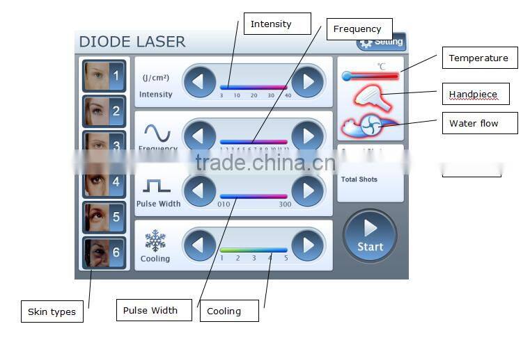 a)Skin types: There are total 6 skin types, operator could choose different skin types for different treatments. Meanwhile, operator could also save the parameters of these skin types.