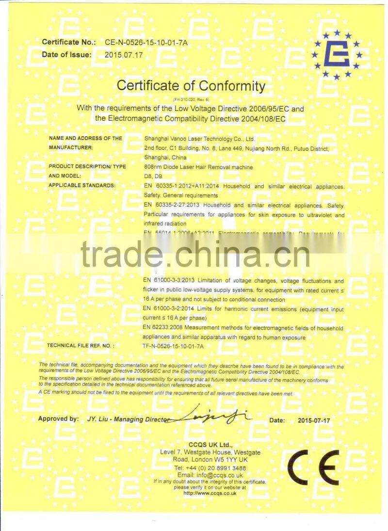 Vanoo Laser Top 808 Diode Laser Hair Removal 0-150J/cm2 Machine / Diode Laser 808nm Hair Removal With CE 3000W
