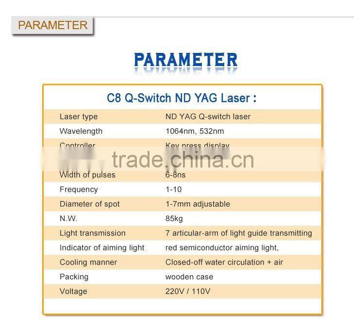 | Model Number | c8 | Feature | Dark Circles, Pigment Removal, Pigmentation Correctors, Skin Rejuvenation, Tattoo Removal, Whitening |