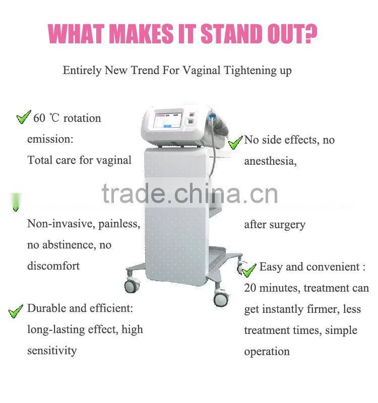 The Vagina Tightening HIFU System uses an noninvasive ultrasonic focusing technique to directly focus on the mucosal lamia and muscle layer. Using ultrasonic waves as the energy source and taking advantage of its penetration and facility, the system will send out ultrasonic energy focusing in the lamina and muscle fiber layer in a predetermined depth. A higher intensity of ultrasonic region, called focus region, is formed. In 0.1 second, the temperature of the region can reach to above 65 ℃ , so the collagen is reorganized and the normal tissue outside the focal region is undamaged. Therefore, the desired depth layer can obtain the ideal effect of collagen contraction, reorganization and regeneration. Ultimately, the mysterious effect of vagina tightening is achieved.