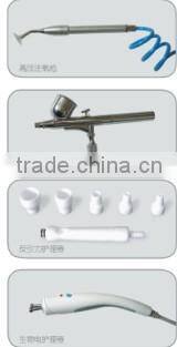 l   How it works? It is a simple and effective superficial peel that helps rejuvenate the facial skin. It makes use of pressurized oxygen to accelerate a liquid agent (saline) to supersonic velocities, creating an exfoliative effect on the skin. The liquid agent (saline) is compounded with different vitamins and supplements that will address the problem of the patient. The high velocity, at the speed of 200m/s, peels the superficial layers of the skin allowing better penetration of the compounded substances, and prevents skin inflammation and infection by saline solution which is put out in spray. The anaerobic bacteria in the sebaceous glands cannot exist when oxygen is spray into the skin. At the mean time this system supply sufficient nutrition to the skin, accelerate the cell regrowth, subsequent reepithelialization takes place resulting in younger, healthier skin. Some apparatus have funtion of skin checking and photo saving. Banding with LED(Low Emitting Diode) patients will get quick and reliable skin regeneration result.