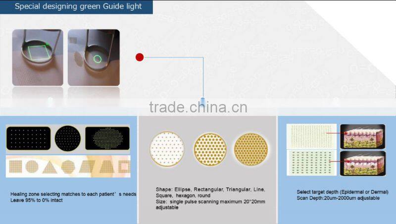 Ultrapulse fractional co2 laser emits thousands of deep, tiny focal spot columns in your skin, called microscopic treatment zones. These lights penetrate into dermis skin, gasify the tissues around wrinkles and scars in an instant and make a signal of compounding collagen like tissues repair, collagen rearrangement ettc to regain a new fresh and healthy skin of youth.