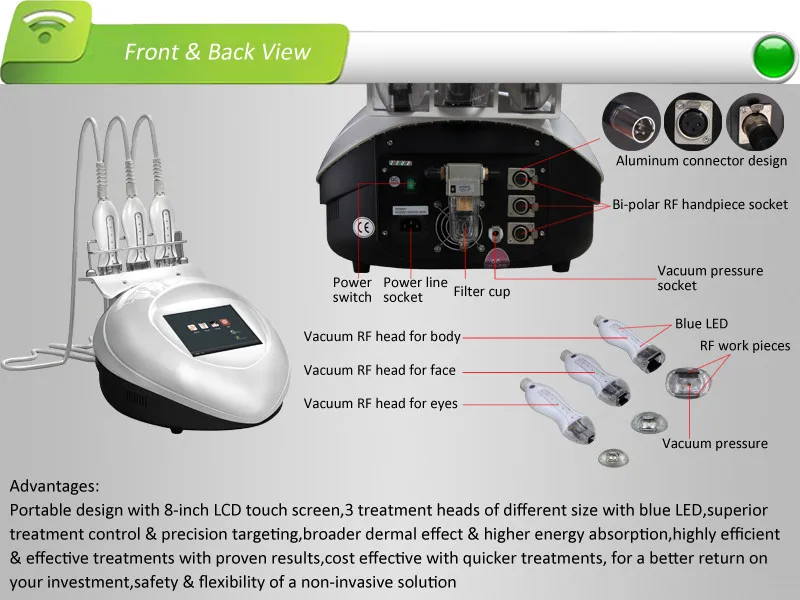 2016 Vacuum rf System Skin Tightening Machine Home Use, 3 Handpieces for Eyes,face and Body
