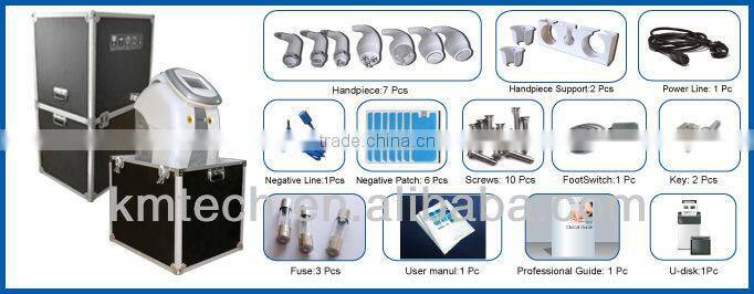 There 7 advanced technologies in our this machine(KM-RF-U900C): Cavitaion+ Vacuum+Ultrasonic+Tripolar RF+Bipolar RF+Monopolar RF+650nm Laser, so it can reduce your cost but make more profits for you!!