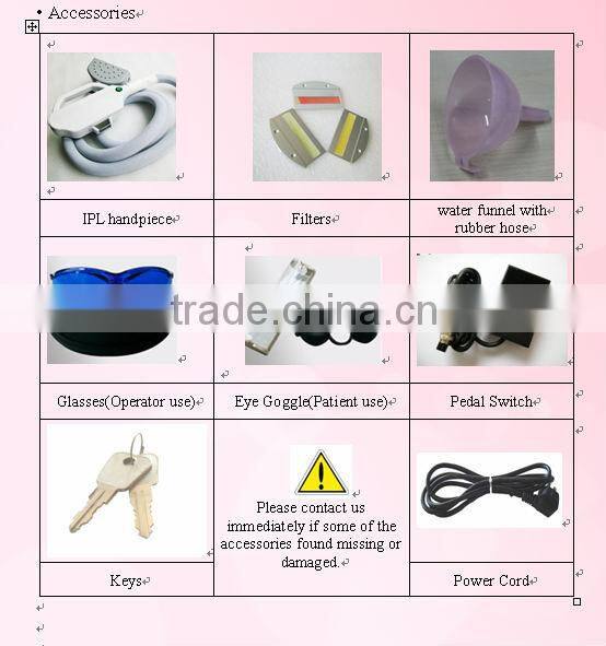 | Model Number | A003 | Feature | Hair Removal, Blood Vessels Removal, Pigment Removal, Pigmentation Correctors, Skin Tightening, Acne Treatment, Skin Rejuvenation, Dark Circles, Breast Enhancers, Wrinkle Remover |