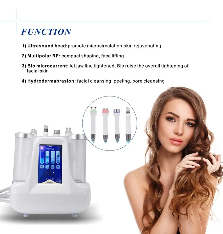 4) Hydrodermabrasion: facial cleansing, peeling, pore cleansing