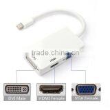New 3 In1 Mini DisplayPort DP To DVI VGA Adapter For MacBook Pro Air