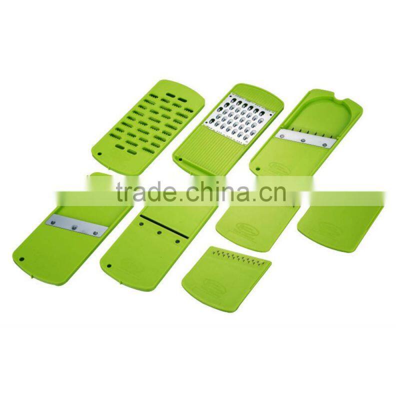 | Accessories & Material | 1. Ice shaver ABS+S/S 2. Thick Slicer ABS+S/S 3. French-fry blade ABS+S/S 4.Grater ABS+S/S 5.Puree Blade ABS 6.Thick Julienne insert ABS 7.Thin julienne insert ABS+S/S 8.Thin slicer insert ABS+S/S |