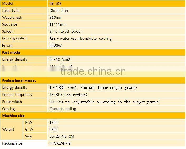 | Model Number | diode laser 808nm hair removal BM-108 | Feature | Acne Treatment, Blood Vessels Removal, Hair Removal, Pigment Removal, Pigmentation Correctors, Pore Remover, Skin Rejuvenation, Skin Tightening, Weight Loss, Whitening, Wrinkle Remover |