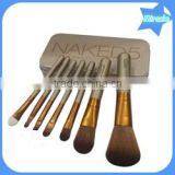 7pcs Hot Selling Coffee Color Naked Brush Set With Cosmetic Tin Box Make-up Set