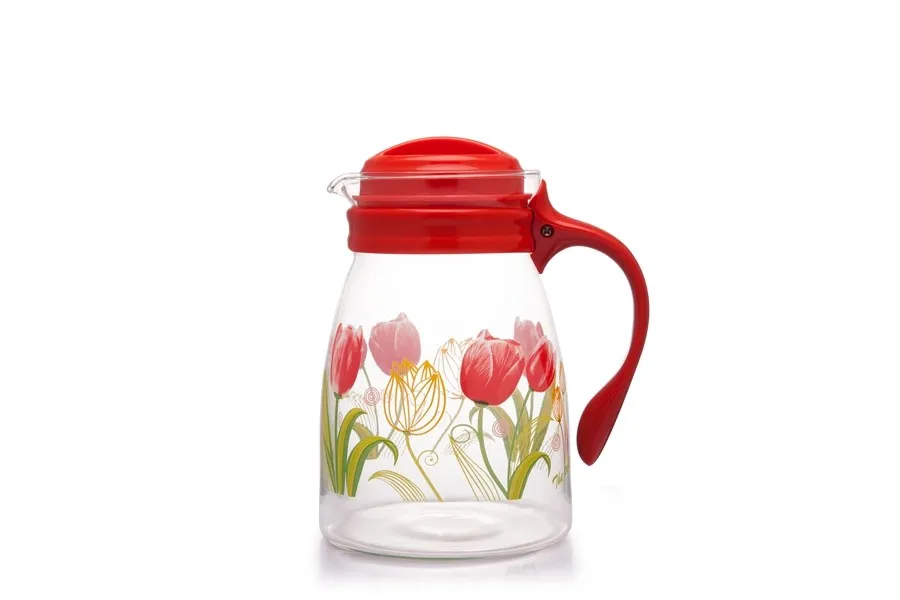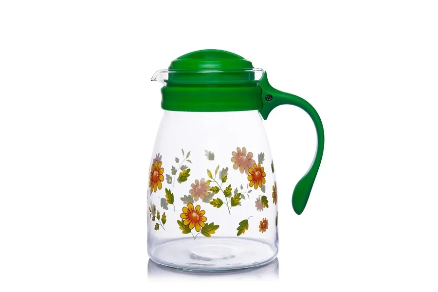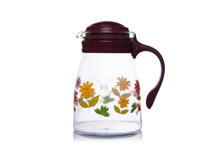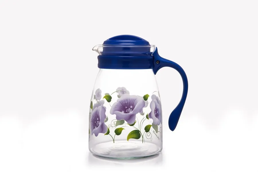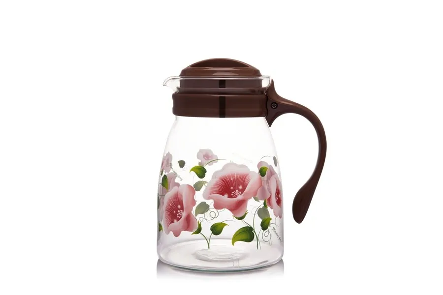 2.5L Glass Jar With Faucet Flower Printing Beverage Juice Dispenser With Cups