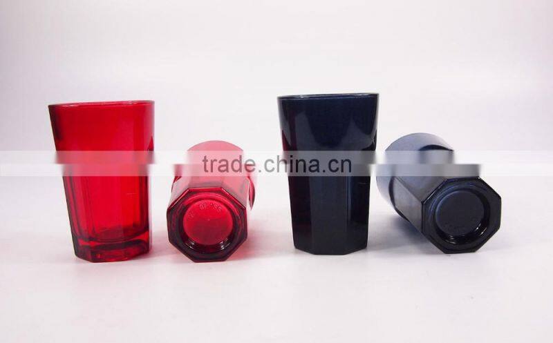 Home > Products > Glassware > New Design Red And Black Drink Glass Beverage Dispenser With Cups And Rack