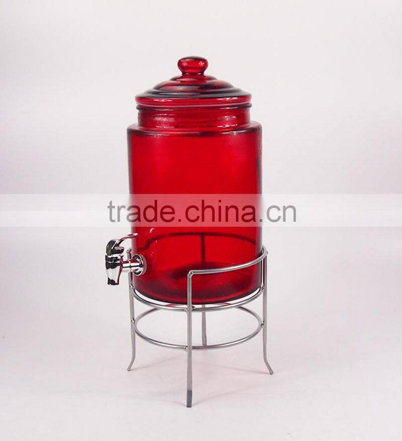 6300ml Water Jar Wholesale Glass Beverage Dispenser With Metal Rack