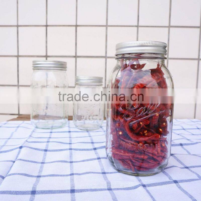 Clear Glass Food Storage Jars 32oz Glass Mason Jar Ball With Metal Lids