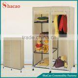 Beige Color Non Woven Assemble Fabric Folding Wardroble With Wheels