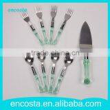 Green Crystal Handle 9Pcs Stainless Steel Flatware Set