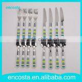 Green Strip Colorful 16Pcs Stainless Steel Cutlery Set With Plastic Handle