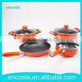 High Quality Orange 16/18/20/22CM Die Casting Aluminum Cookware Set With Glass Lid
